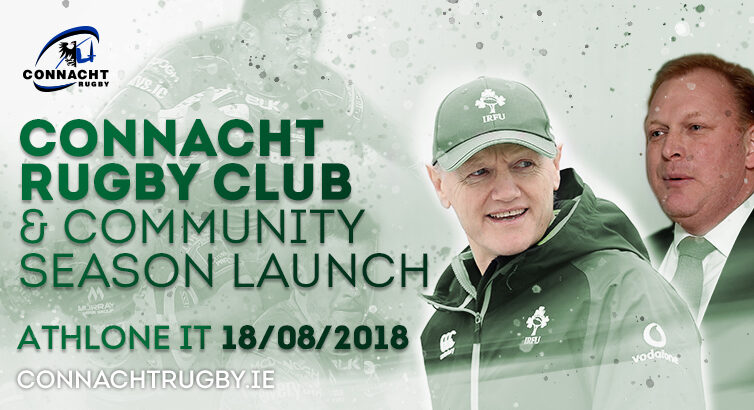 Connacht Rugby Club & Community are delighted to announce that the 2018/19 Rugby Season will be officially launched this Saturday 18th August at Athlone IT.