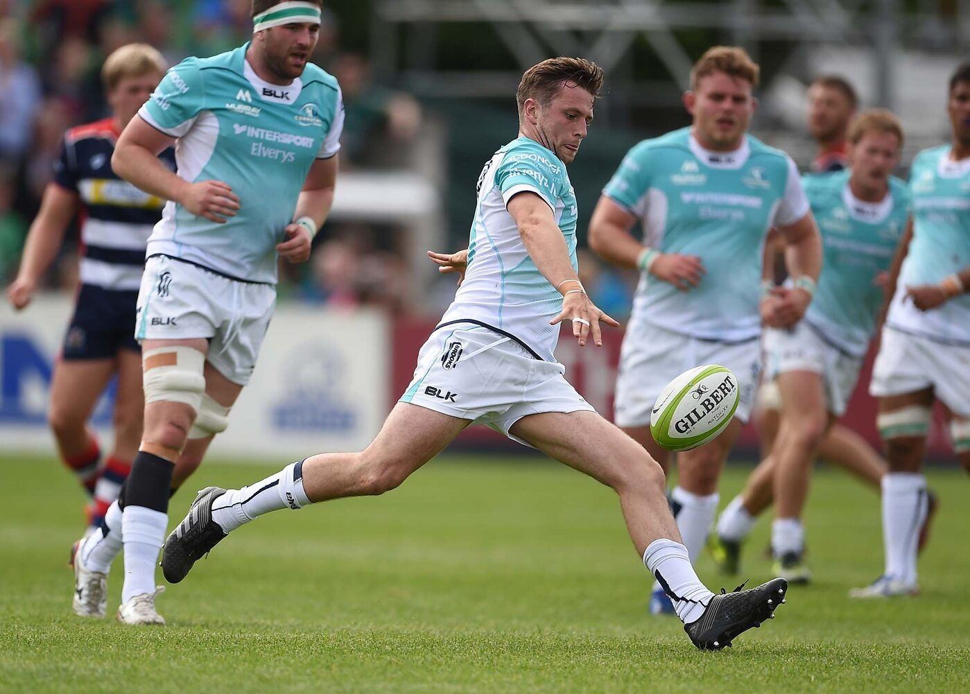 The team played the first half sporting their new alternate kit which is a striking mix of cyan and white with a navy finish. The jersey also features the soaring Connacht Rugby eagle across the abdomen with white shorts and socks.