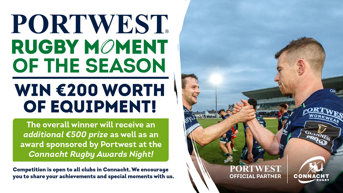 How:Clubs are being encouraged to upload the moment as a post on their Facebook or Twitter accounts detailing what made the moment so special with some text and photos or a video. In the post they must tag @PortwestIreland and @GrassrootsToGreenShirts on Facebook or @PortwestIreland and @ConnachtRugby on Twitter to formally enter the competition..