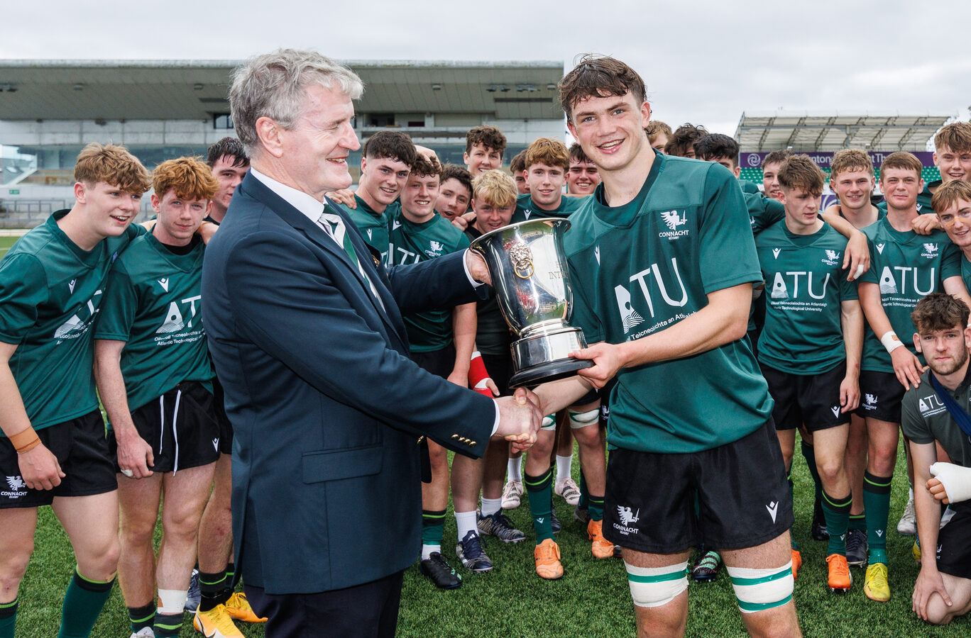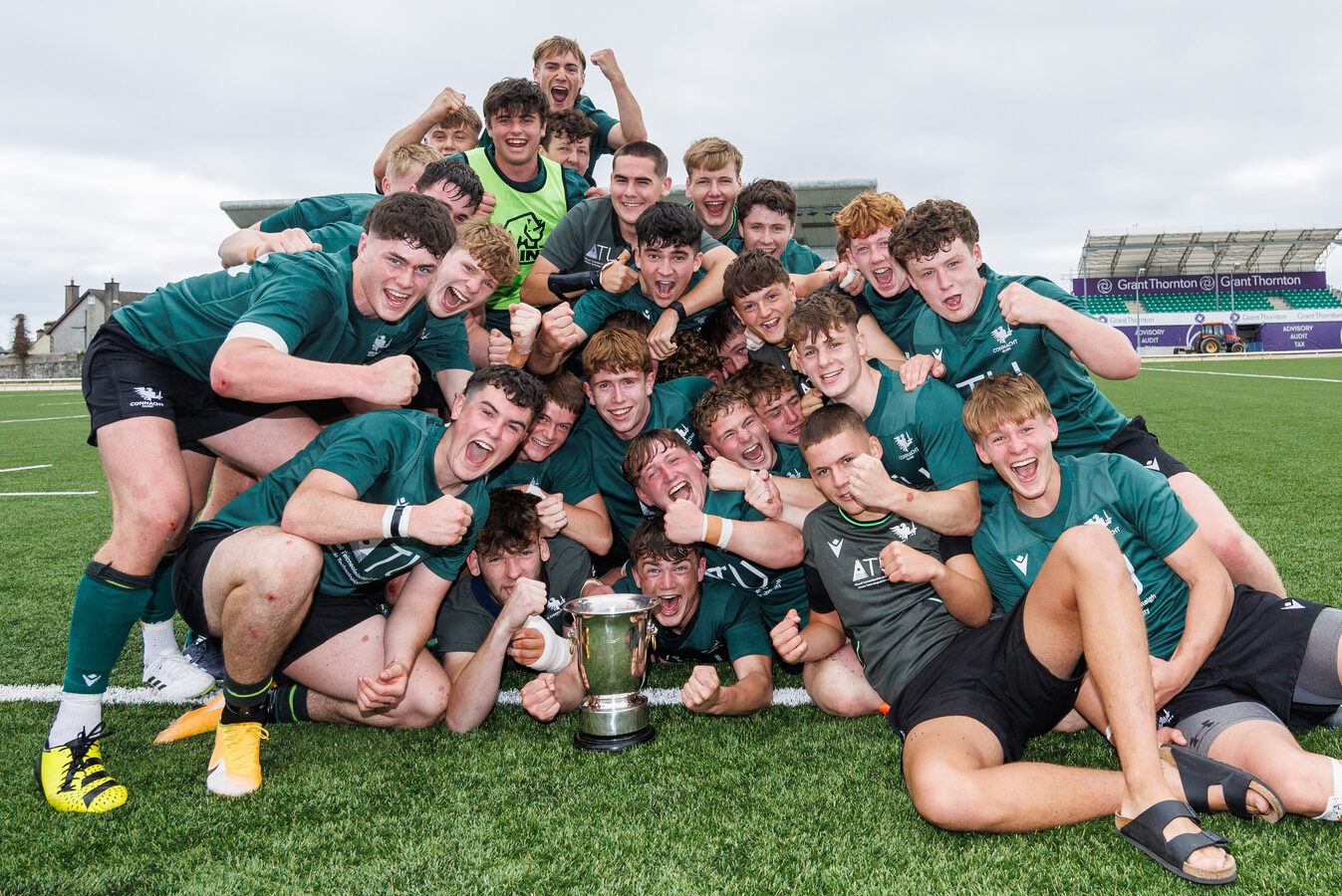 Having begun to press into the Connacht half and built some rhythm, Munster were ready to go for the second half. This half began similarly to the first half with both teams making scrappy mistakes, showing their age and needing to settle into the game again. This time, it’s Munster with the first try of the half as they power over the line off a scrum and the conversion is put between the posts to make the score 15-7 after 11 minutes. This try seemed to settle both teams again, and the rest of the game was yet again Connacht-dominant. Rory Lyons and Charlie O'Carroll each add a try to the board in quick succession with Tom Sheehan adding one conversion to make the score 27-7. Vice-Captain Sean Walsh seemed to be involved with nearly every try and successful play Connacht had in the second half and spurred on the team with his leadership. By this point, there was less than 10 minutes left and Connacht was sprinting towards the win and the trophy while a silent Munster bench looked on. All the Connacht players and subs got game time and the discipline and depth of the full team was evident. The final whistle blew a short time later and cheers erupted from the stands, the players, and the coaches. When they lifted the trophy after, it mirrored the game itself – they lifted it as a team and held each other up in support. Final score: 27-7.