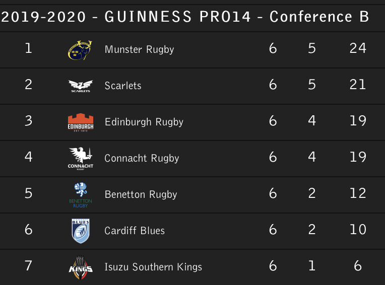 Connacht sit in 4th place in a congested Conference B after 4 wins from 6 games, while the Kings' sole victory so far has come away to the Ospreys.