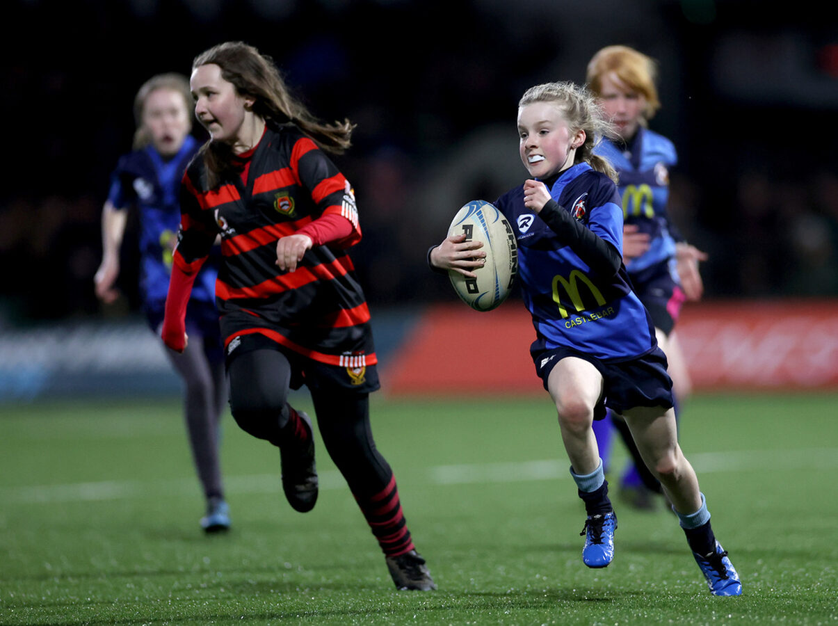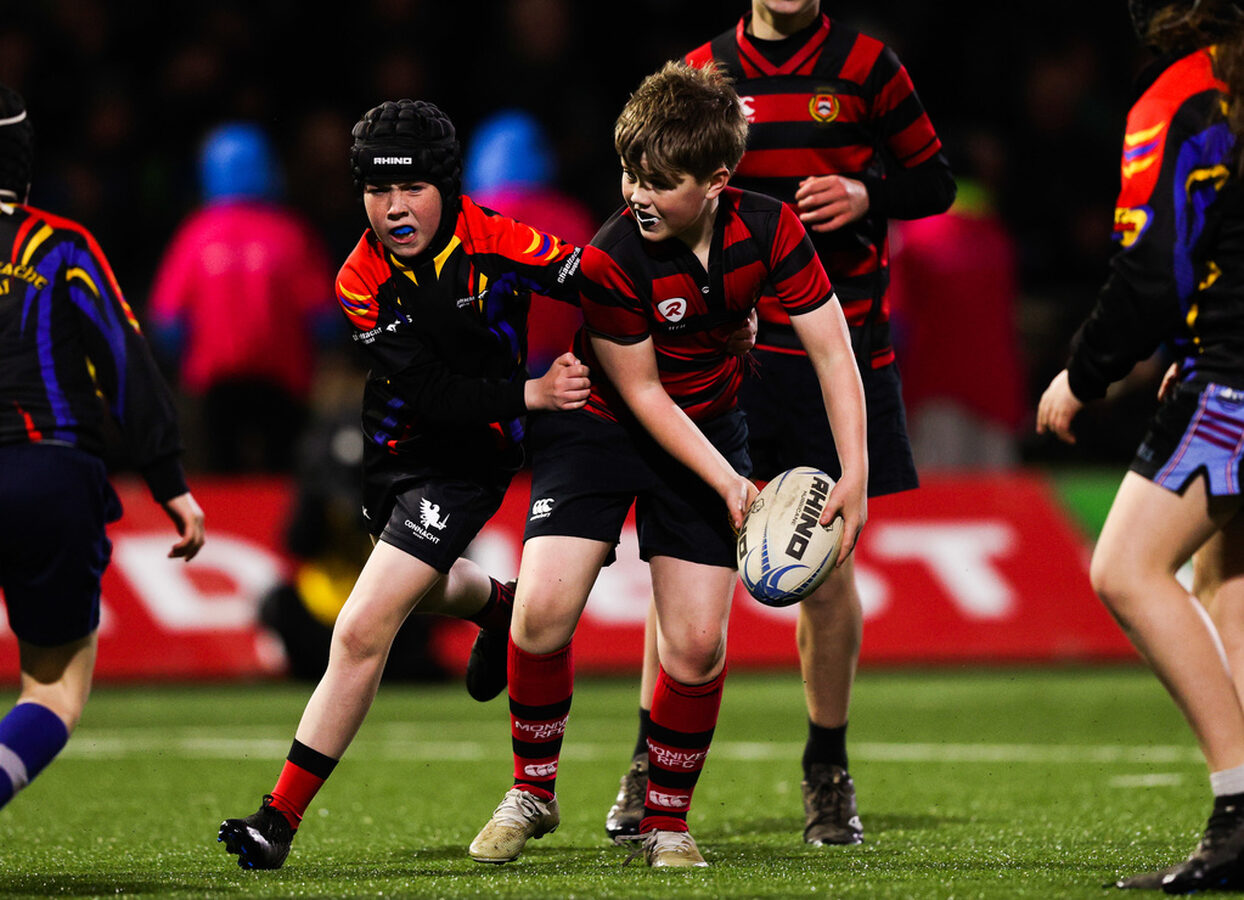 Half time minis during the Connacht Cardiff game at The Sportsground with An Ghaeltacht Castlebar and Monivea.