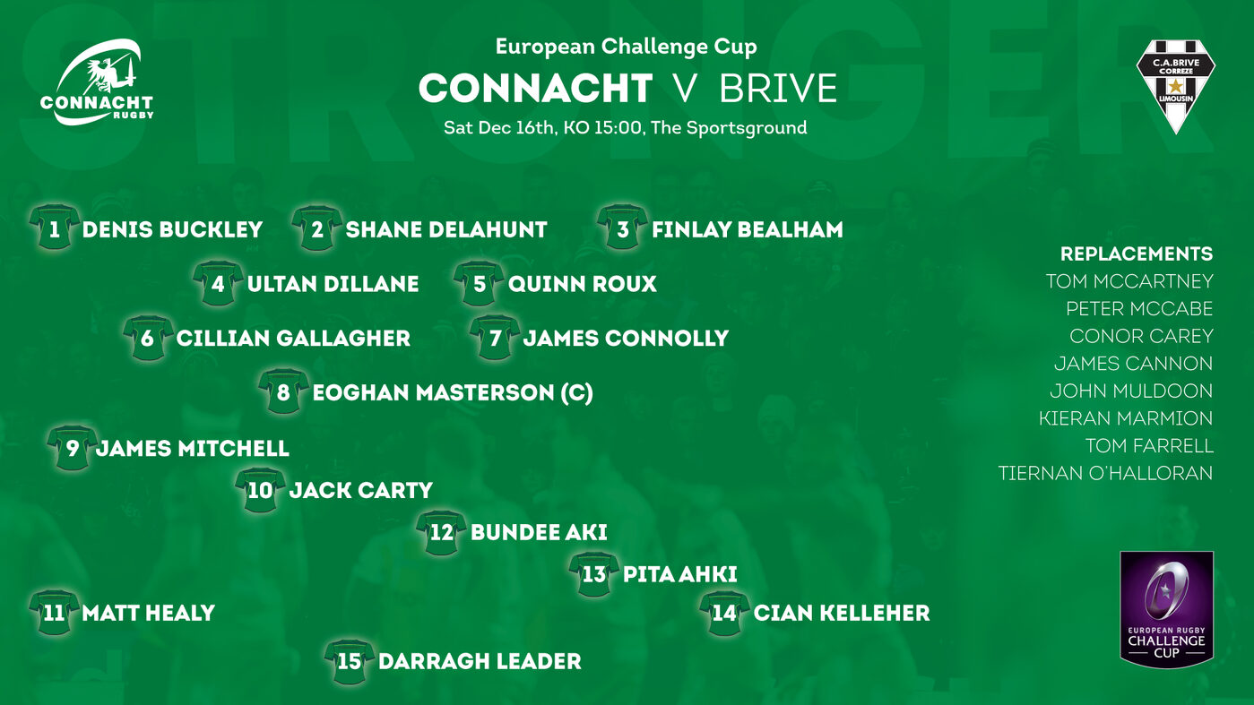After a bonus point win away in France last weekend, we're all set for the return leg this afternoon in the Sportsground. We're now three from three in Pool 5 in the Challenge Cup and looking to consolidate the great start. Connacht sit on top of Pool 5 after three rounds and a win at home to Brive would put them in an excellent position to qualify for a home Quarter Final.