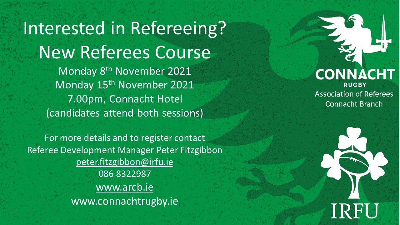 and on the Connacht Rugby website here https://www.connachtrugby.ie/community/becoming-a-referee/ .